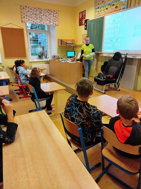 Žáci chodili po třídách, kde byla připravena paní lektorka s programem např. vybavení kola, pravidla silničního provozu, snížená viditelnost, zdravověda. Doufáme, že si děti budou dávat větší pozor v dopravě.