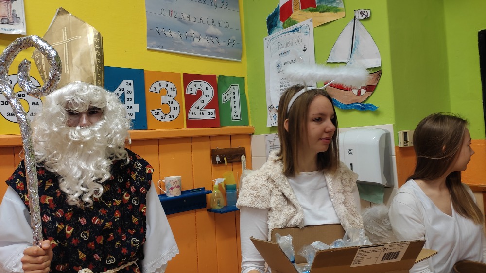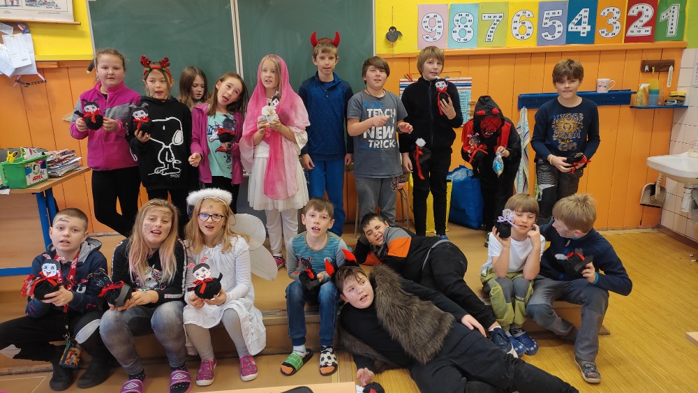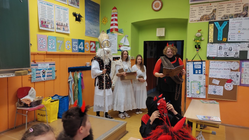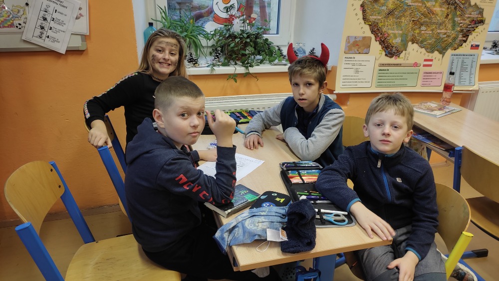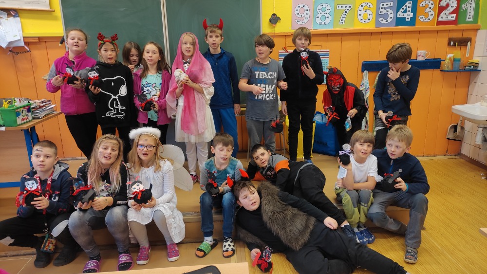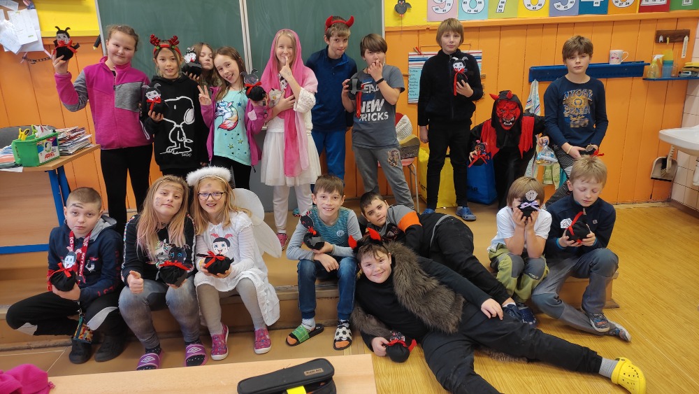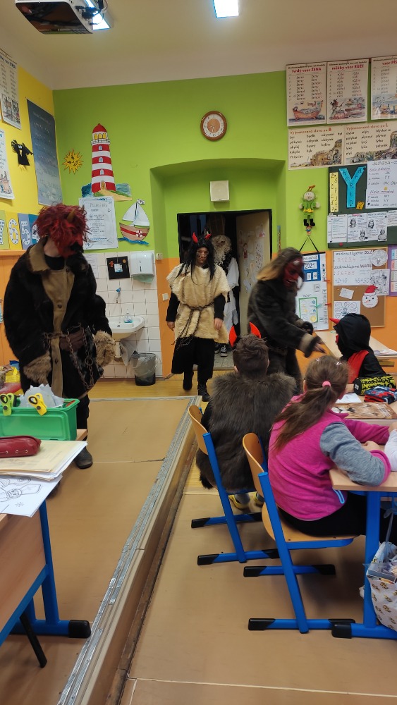 Deváťáci v podobě čertů navštívili IV. třídu.